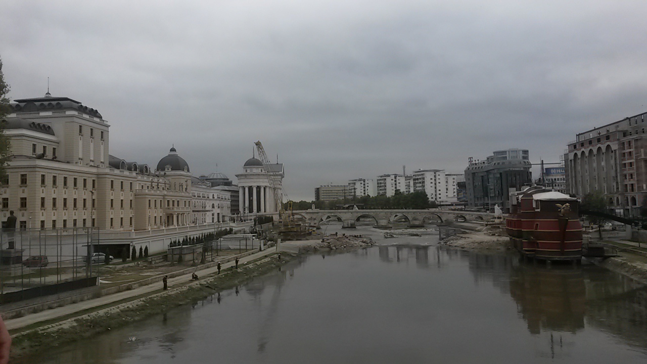 הליכה קצרצרה במדרחוב במרכז העיר, אני וגו' היינו בשוק טוטאלי! הכל נראה ממש ממש חדש וטרי, פסלים ענקיים, ובטח אלכסנדר מוקדון הכי ענקי בין שאר הפסלים, עשרות פסלים חדשים! מרכז העיר נראה ממש חדש ועובר שיפוץ רחב, עלינו על הגשר להמשיך לצד של העיר הישנה, הנהר נראה ממש מוזנח ומגעיל, כנראה מהשיפוצים לאורכו, איפה ששמנו לב בונים ספיונת בסטייל עתיק וכמובן ענקיות, ספרתי שלושה! לא כזה מצאנו שום עניין בזמן ההליכה או איזה בר נחמד לשבת ולשתות בירה, וגם