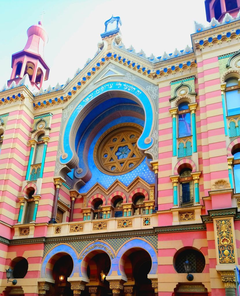 הראשון והמפתיע ביותר הוא דווקא בית הכנסת ירושלים, שהוא אחד מבתי הכנסת היפים בעולם. זהו בית הכנסת הראשון של הקהיל ה בפראג שנבנה מחוץ לרובע היהודי. הוא נמצא ברחוב ירושלים, מספר דקות הליכה מכיכר וצלב המרכזית. בית הכנסת משלב את הצבעוניות של האר-נובו עם סגנון מזרחי שנקרא תחייה מורית. סגנון זה הפך לפופולרי במיוחד בבניית בתי כנסת ברחבי העולם, והפך למעין סטנדרט המשלב סמלים יהודיים, עיטורים מוסלמים ואדריכלות כנסיות, והכל מתנקז למסר של שיח וסובלנות בין-דתית של יהודים שרצו להיות גם דומים לאחרים אך גם לשמור על הזהות שלהם בארצם. כיאה לבית כנסת מפואר, מבפנים הוא יפה לא פחות מאשר מבחוץ, ונותן אווירה משונה שאנחנו לא רגילים לה בבית כנסת, כאילו נכנסנו לסרט של אלאדין או לאגדה אחרת. בית הכנסת פתוח לביקורים בימי חול, ומשמש גם לתפילות בשבתות ובחגים. בנוסף, לפעמים מתקיימות במקום הופעות עוגב, שנחשב לאיכותי במיוחד. כתובת: 1310/7 Jeruzalémská.